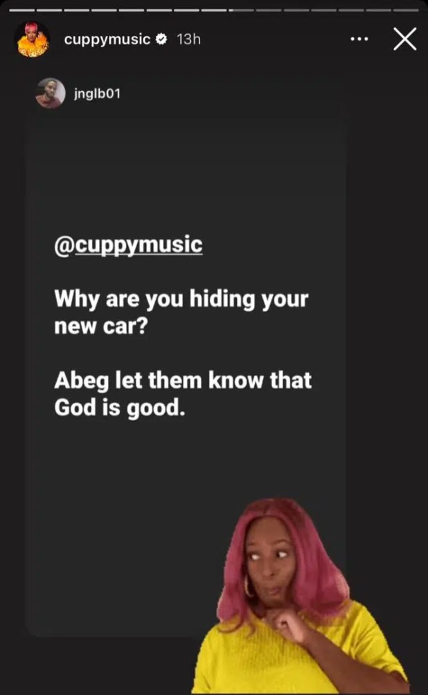Taking to her Instagram story, Dj Cuppy flaunted the new addition as she gives a short summary of the car’s features and her reason for choosing it.