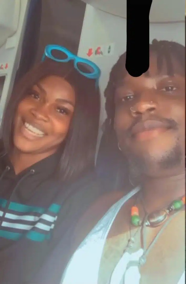 The duo stumbled on one another while on a local flight in Delta State before taking off. Verydarkman could be seen taking a video with the lady who effortlessly blushed in his company.